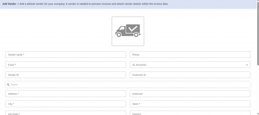 Add a default vendor for your company. A vendor is needed to process invoices and attach vendor details within the invoice data.